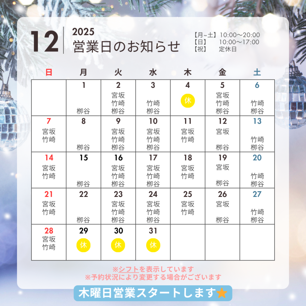 【12月営業のお知らせ】