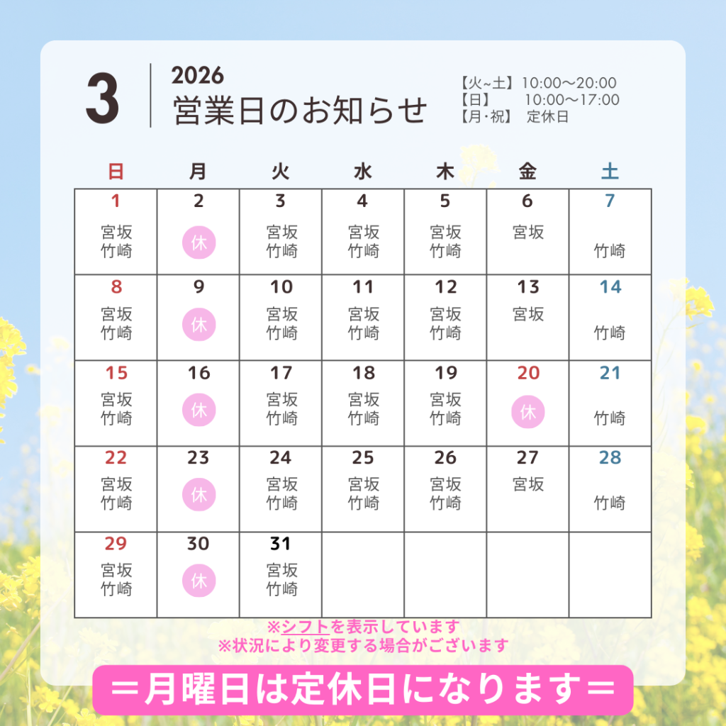 【3月営業日のお知らせ】